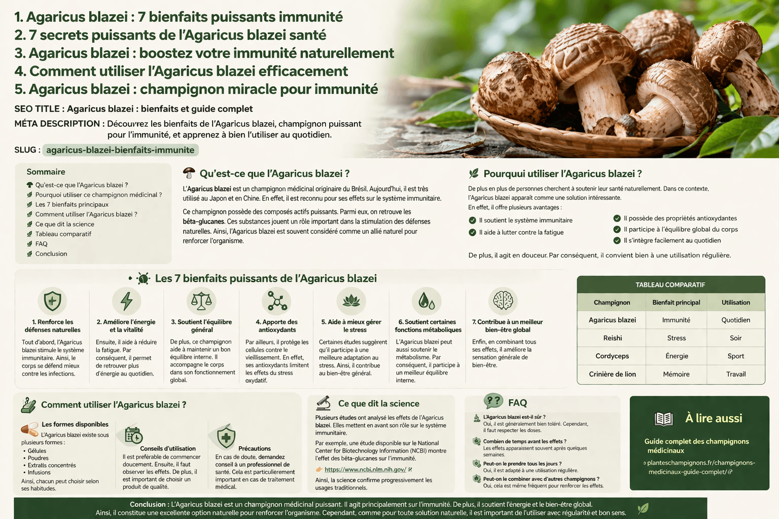 - Les 7 bienfaits puissants de l’Agaricus blazei